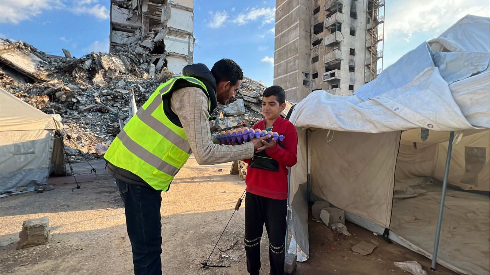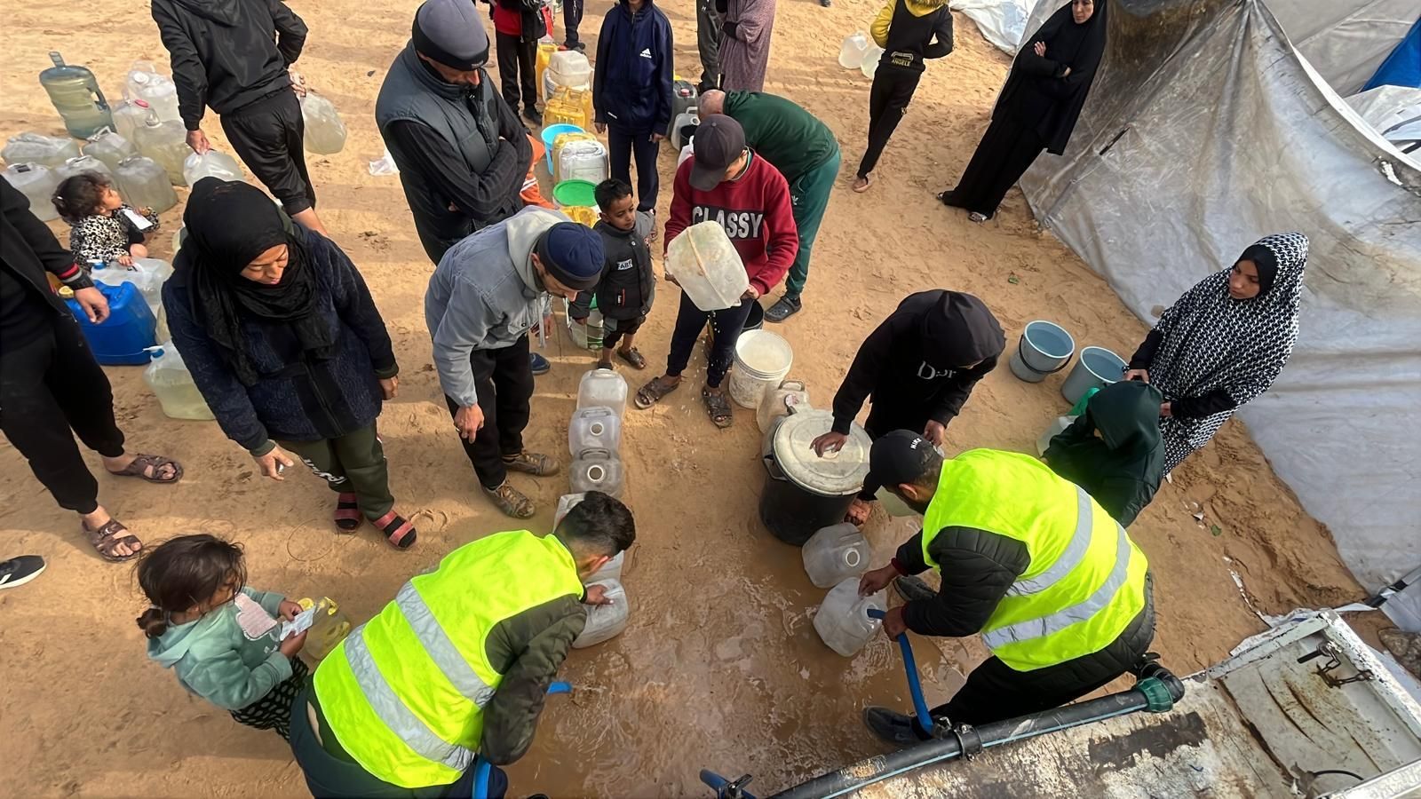 This is a portion of your aid reaching our deprived and oppressed people—the children, women, and elderly who are suffering from hunger, fear, and siege.